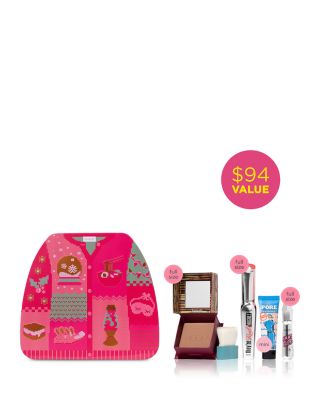 What It Is: Get 3 full-size Benefit bestsellers plus a mini! Features full sizes of the powerful lengthening mascara, matte bronzer and volumizing brow gel. Set Includes: - They're Real! Magnet powerful lifting & lengthening mascara in supercharged black (full size) - Hoola matte powder bronzer for face (full size) - Gimme Brow+ brow-volumizing fiber gel in shade 3 (full size) - The POREfessional Hydrate Primer hydrating face primer to minimize the look of pores (mini) What It Does: It's a holiday haul! Get smoother-than-smooth skin with a hydrating pore primer, The POREfessional Hydrate Primer, natural-looking bronzed skin with the award-winning matte bronzer, Hoola, powerfully lifted & extremely lengthened lashes with Benefit's newest mascara, They're Real! Magnet and va-va-volumized brows with brow gel, Gimme Brow+. Comes ready to gift (or get!) in a fun 'n' festive holiday tin!