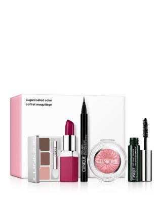 What It Is: A sugarcoated holiday makeup set in a box that's sweeter than candy. Set Includes: - Clinique Pop Lip Color + Primer in Raspberry Pop - All About Shadow Trio (with shades from Strawberry Fudge Duo and Pink Chocolates Quad) - High Impact Mascara in Black - Pretty Easy Liquid Eyelining Pen in Black - Cheek Pop in Heather Pop What It Does: Give eyes a sweet glow with a limited-edition holiday trio of colors, pairing the best-selling light and dark shades from the Strawberry Fudge All About Shadow Duo with the darkest shade from the Pink Chocolates Quad. Define eyes with the Pretty Easy Liquid Eyelining Pen and High Impact Mascara. Sweep on Cheek Pop for a burst of color you can build. Finish with a sugarcoated kiss of Clinique Pop Lip Color + Primer to keep lips comfortably moisturized with a rich berry color plus smoothing primer in one. Free Of. - Parabens - Phthalates - Fragrance